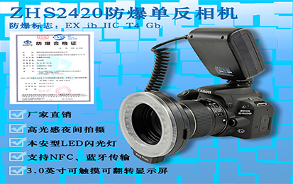 防爆(bào)相機 ZHS2420等(děng)級為(wéi)Ex IIC T4 Gb,是本安型防爆中的較(jiào)高安全等級,機身小巧輕便,外接式閃光燈(dēng)為化(huà)工石油等倉庫黑暗地區提供了(le)更(gèng)加良好的(de)照明條件。包裝采用了一體化的裝箱設計,